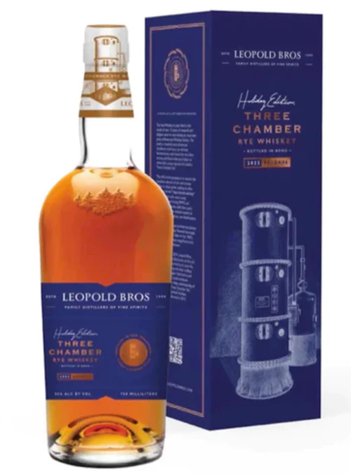 Introducing the Leopold Bros Three Chamber Rye Holiday Edition 2022 Release! For over a hundred years, American rye whiskey was commonly produced in what was called a Three Chamber Still to extract not only distillate, but also oils and aromas hidden in the grains. The resulting spirits was marketed as “heavy-bodied” whiskey, but production stopped just after World War II and the still in which is was made became a lost American tradition. Leopold Bros. painstakingly re-engineered a Three Chamber Still from old manuscripts and grew the heritage grain Abruzzi rye that was favored by Pre-Prohibition distillers.